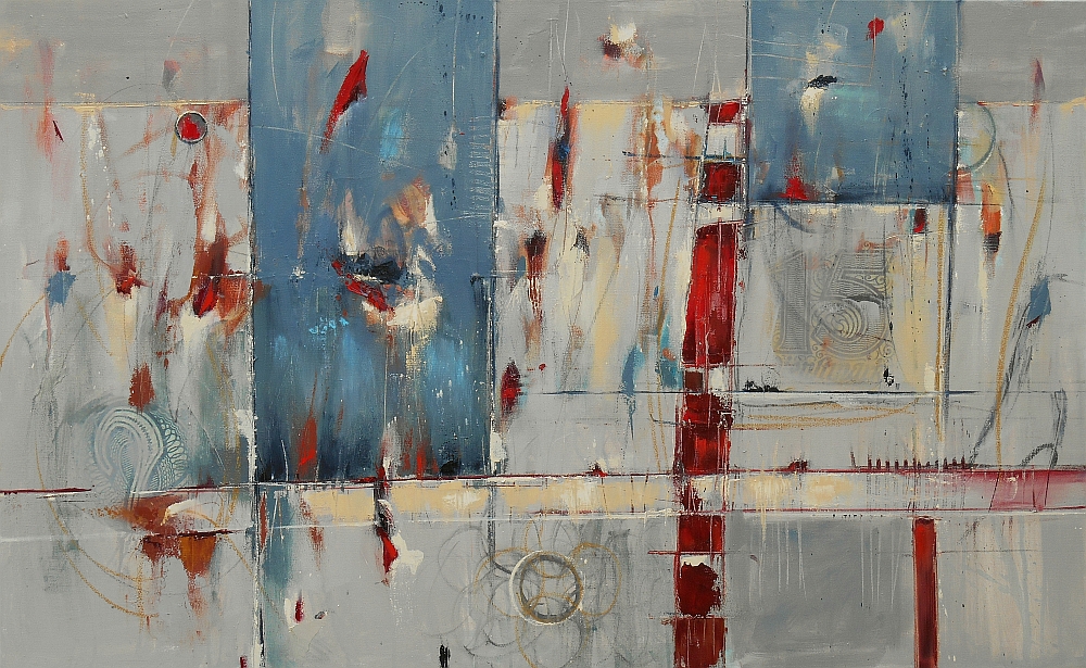 Sky, Journey, Eternity is a bold turn of shapes and colors. I am continuing to explore the subtle balance between order and chaos, darkness and light, structure and freedom.